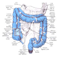 회장 (Cecum), 충수 (Appendix), 맹장 (Colon), 직장 (Rectum).